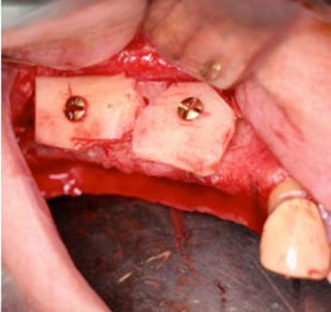 骨をブロックで採取し、チタンのネジで止めます。骨採取にかかる時間は15-20分 です。