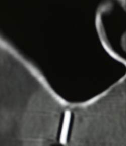 上顎臼歯部では上顎洞があり、歯槽骨の高さがなく、インプラントを植える事が困難な場合があります。しかし上顎洞の底部に骨を移植して、十分な骨を作ることが可能です。下の写真の術前のCTでは非常に薄い骨があるのみで、到底人工歯根は植えられません。しかし上顎洞下部に骨移植を行い、十分な骨を造成する事ができます。骨が足りない場合は人工骨(β-TCP)を自家骨に混ぜて、増量します。